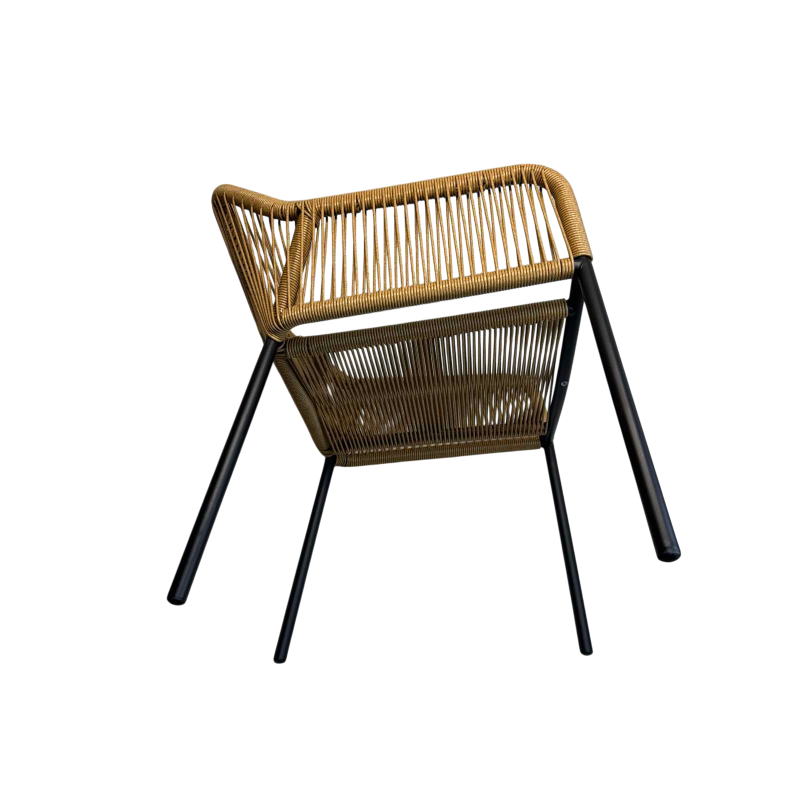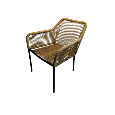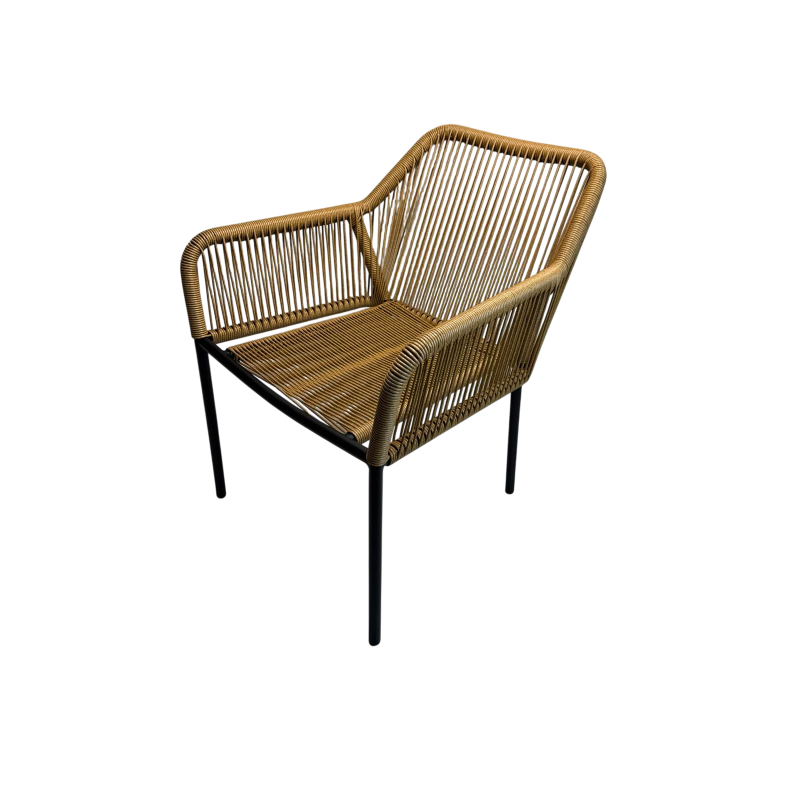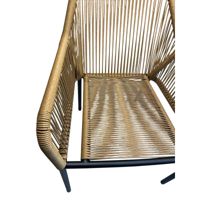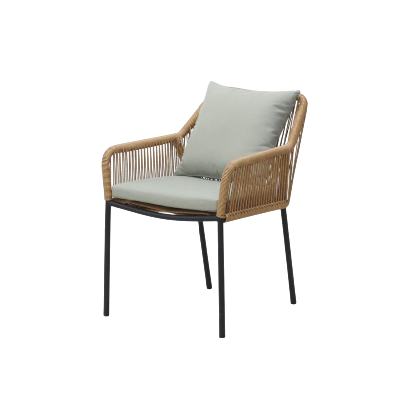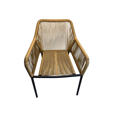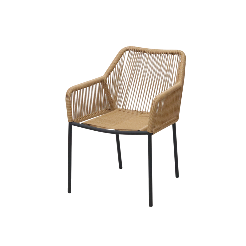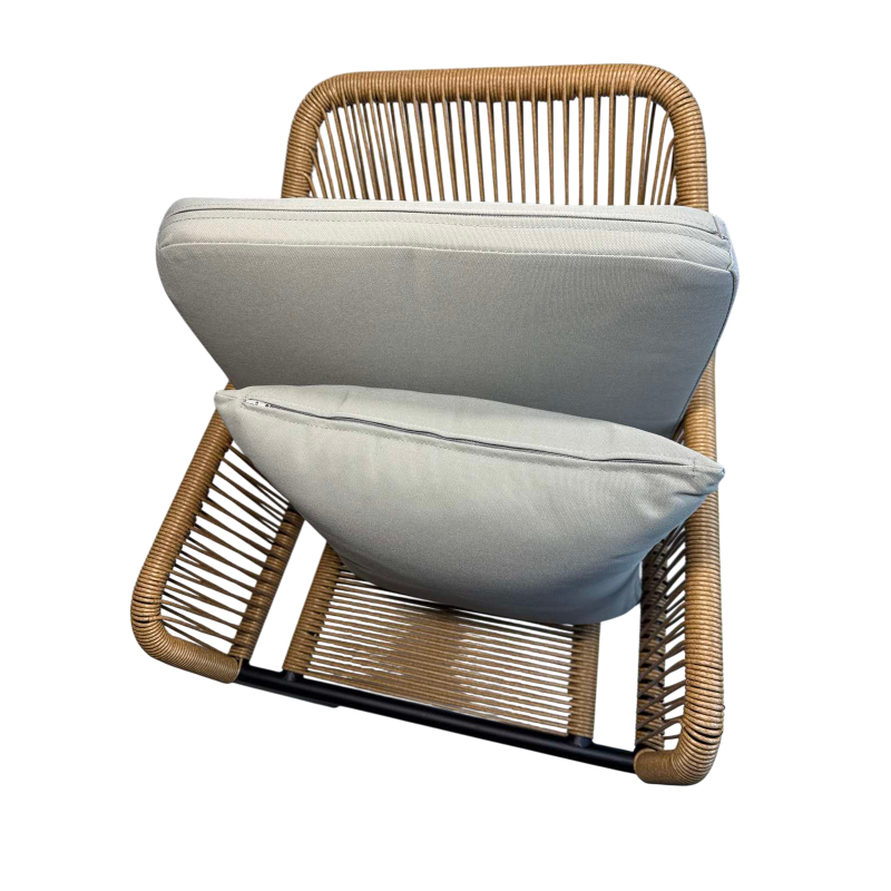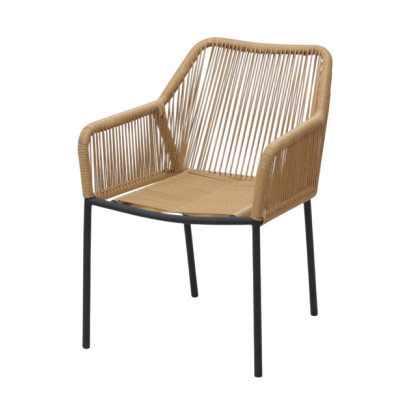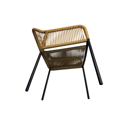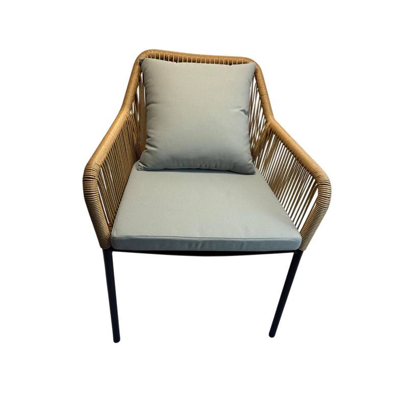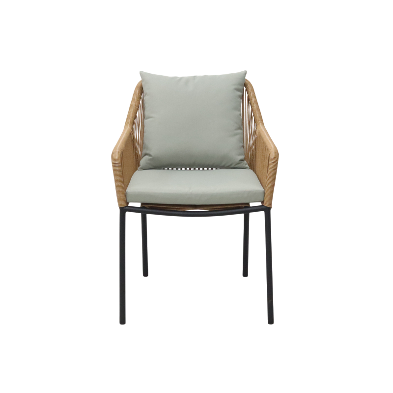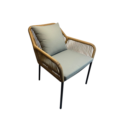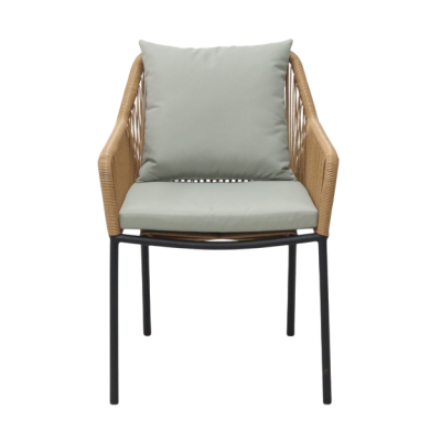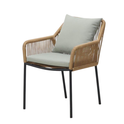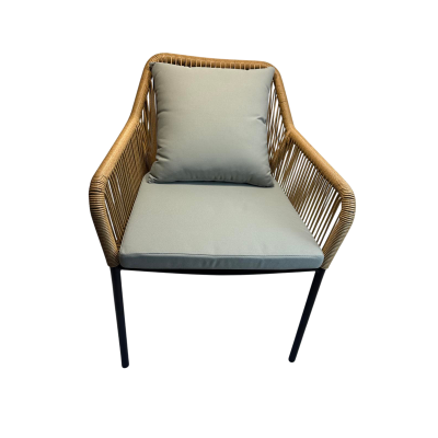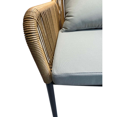Πολυθρόνα ραταν Izabella επαγγελματική μεταλλική μαύρο σκελετό γκρι λαδί μαξιλάρι στο κάθισμα και στην πλάτη μπεζ συνθετικο με σχοινί στιβαζομενη