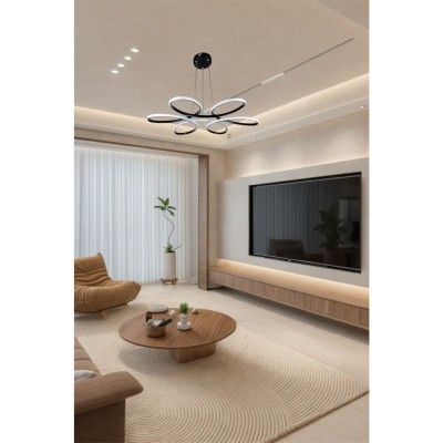 Φωτιστικό οροφής κρεμαστό LED PAPATYA 80 watt μαύρο αλουμινίου με τρείς επιλογές χρώματος φωτισμού.