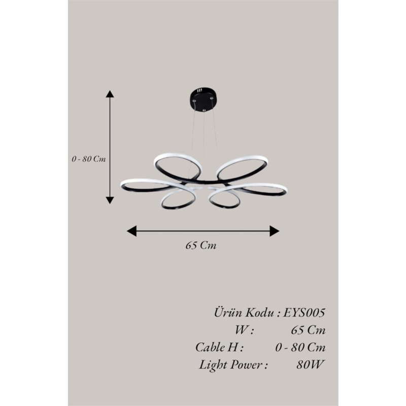 Φωτιστικό οροφής κρεμαστό LED PAPATYA 80 watt μαύρο αλουμινίου με τρείς επιλογές χρώματος φωτισμού Φ60x80εκ