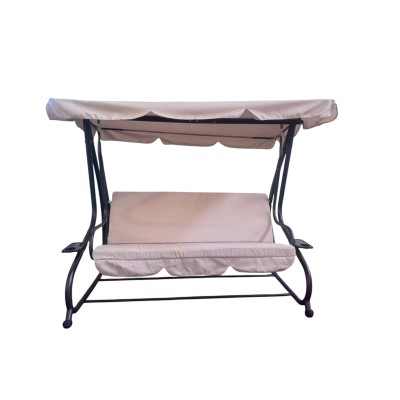 Κούνια κρεβάτι 3θεσια μπεζ βαρέως τύπου εξωτερικού χώρου με σκίαστρο μεταλλική αποσπώμενα μαξιλάρια και βοηθητικά τραπεζάκια MEGY
