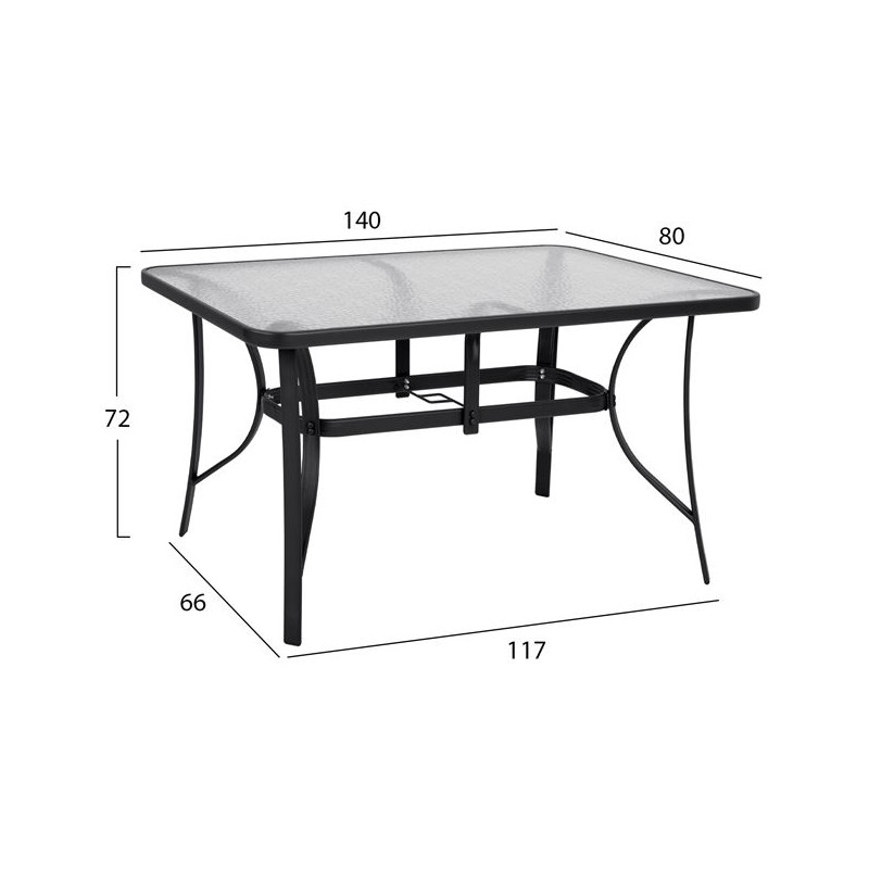 Τραπέζι μεταλλικό γκρι σφυρήλατο με τζάμι ασφάλειας και εξτρά πόδι στην μέση για ενίσχυση και σταθερότητα 140*80*75 εκ