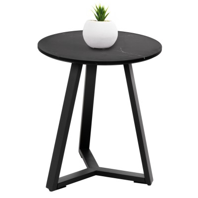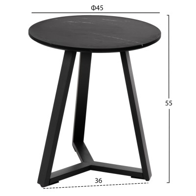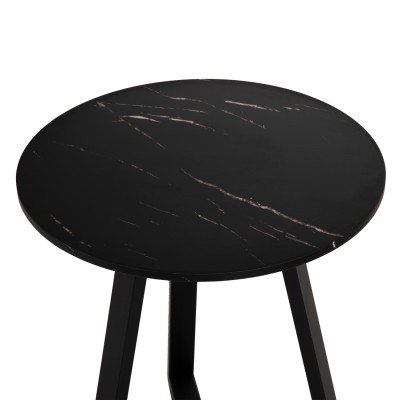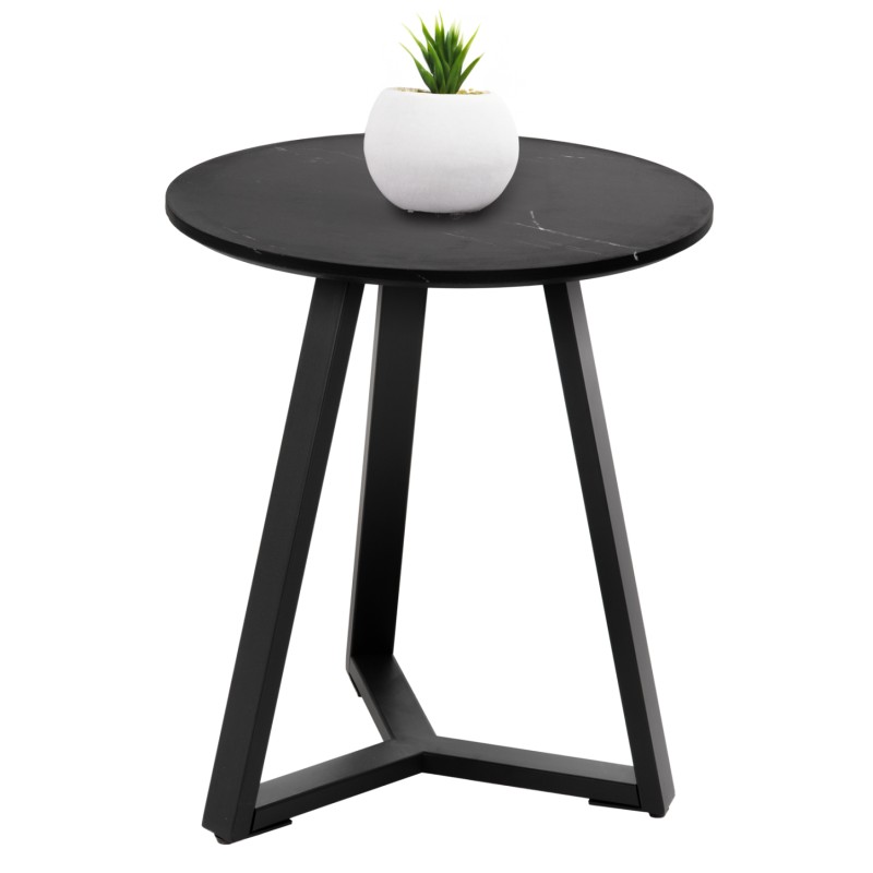 Το βοηθητικό τραπεζάκι ΗΜ9587.01 είναι η καινούργια προσθήκη στην γκάμα μας και θα σας ενθουσιάσει με το στυλ και την πρακτικότητά του. Πρόκειται για ένα στρογγυλό τραπεζάκι με ιδιαίτερο χαρακτηριστικό ότι η επιφάνεια στηρίζεται σε μια μοντέρνα τρίποδη βάση. Η βάση είναι μεταλλική σε ΜΑΥΡΟ χρώμα, ενώ η επιφάνεια είναι κατασκευασμένη από MDF σε χρώμα ΜΑΥΡΟΥ ΜΑΡΜΑΡΟΥ.