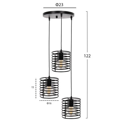 Φωτιστικό οροφής inox sahmeran 3φωτο Ε14 με μεταλλικούς διακοσμητικούς γλόμπους με κρύσταλλα Φ60x10εκ