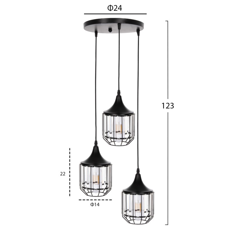 Συνολικό ύψος: 123 εκ. (μαζί με το καλώδιο κρέμασης)