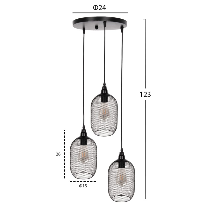 Ανακαλύψτε το καινούργιο μας, πρωτότυπο και φινετσάτο κρεμαστό 3-φωτο οροφής, και ολοκληρώστε ή ανανεώστε την διακόσμησή σας. Οι 3 μακρόστενοι δικτυωτοί κύλινδροι σε 3 διαφορετικά ύψη, είναι η επιτομή του μοντέρνου design.