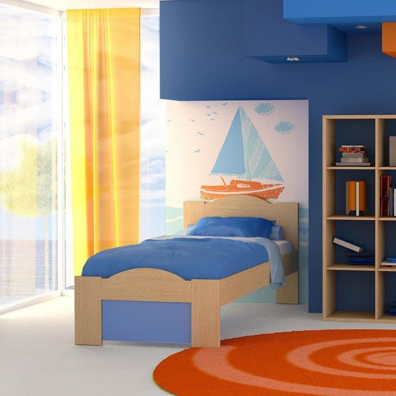 Κρεβάτι παιδικό "Κύμα" δρυς-σιέλ 110x190