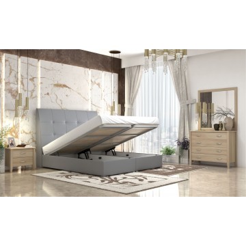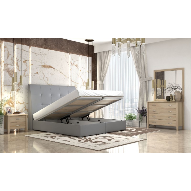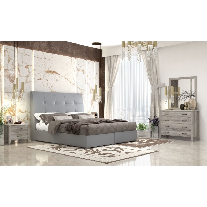 Κρεβάτι υπέρδιπλο,ντυμένο με δερματίνη σε απόχρωση γκρί, με αποθηκευτικό χώρο