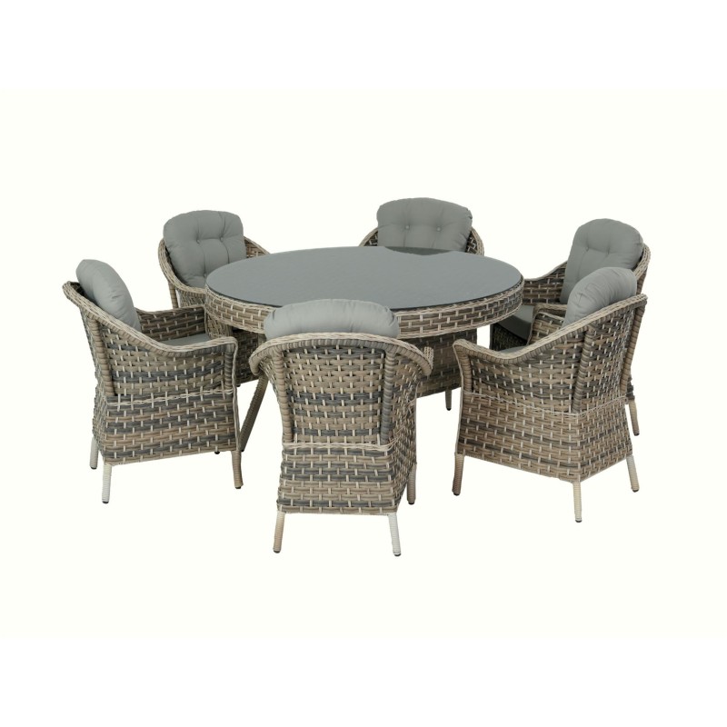 ΣΕΤ ΤΡΑΠΕΖΑΡΙΑΣ 7ΤΜΧ ΤΡΑΠ.Φ160x75εκ & ΠΟΛΥΘΡΟΝΕΣ WICKER RATTAN ΓΚΡΙ