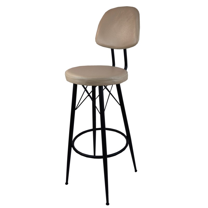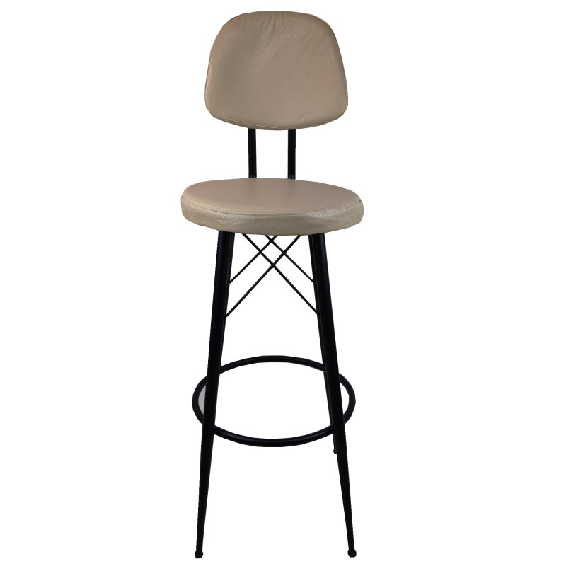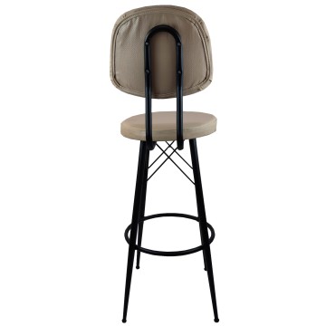 Σκαμπό για μπαρ μαύρο με πλάτη μεταλλικό και μπεζ καπουτσίνο τεχνόδερμα 34*38*111εκ
