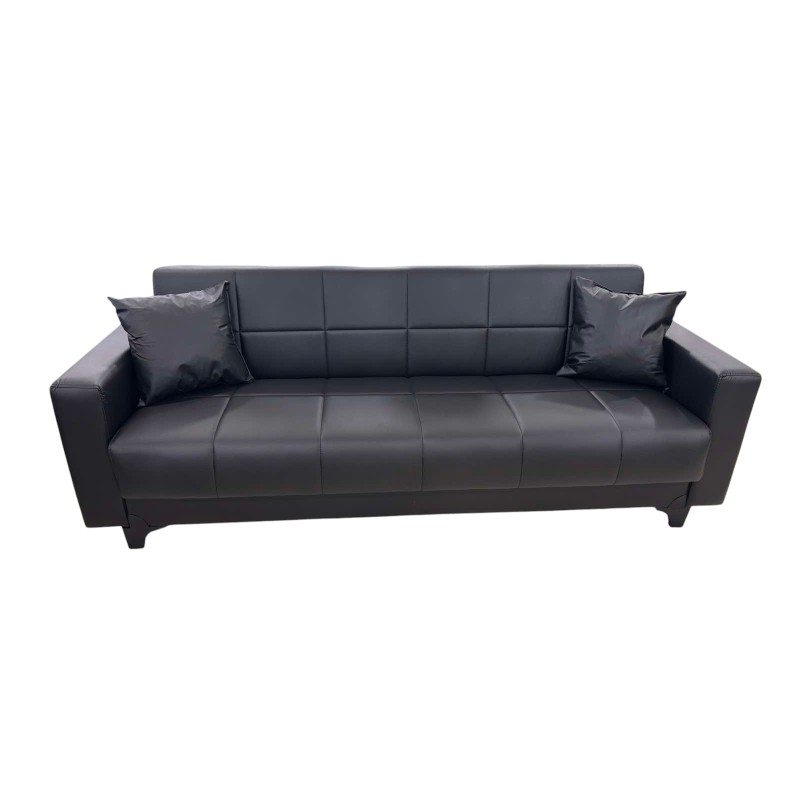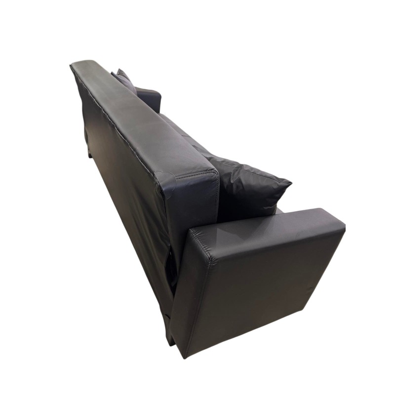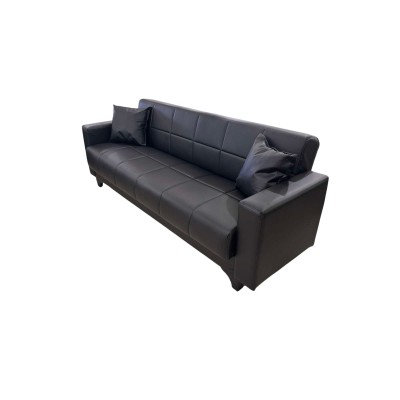 Καναπές τριθέσιος επενδεδυμένος με τεχνόδερμα υψηλής ποιότητας, σε μαύρη απόχρωση 220x80x85 εκ.