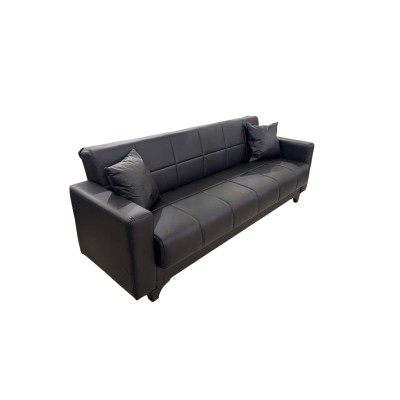 Καναπές γραφείου μαύρος τριθέσιος δερματίνη PU τεχνοδερμα επαγγελματικός κρεβάτι μπαούλο με σχέδιο 220x80x85εκ