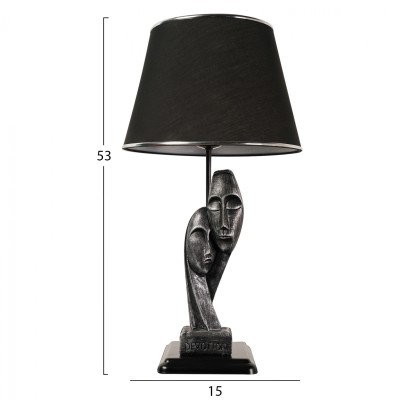 Πορτατίφ λαμπατέρ λάμπα επιτραπέζια ασημί inox μεταλλική Ε27 με ασημί καπέλο υφασμάτινο με επικάλυψη PVC Φ20x37εκ
