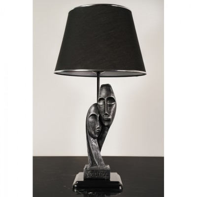 Φωτιστικό επιτραπέζιο σε vintage στυλ με πολυεστερικη βάση χρυσο-μπρονζε απόχρωσης και υφασμάτινο καπέλο σε καφέ χρυσό χρώμα με μαύρες λεπτομέρειές(σε σχήμα λουλουδιού) μονοφωτο.
