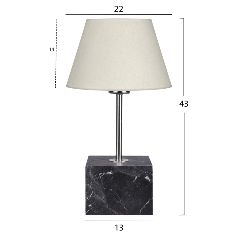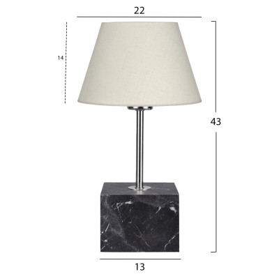 Επιτραπέζιο διακοσμητικό φωτιστικό με μονή κολώνα. Η βάση του φωτιστικού έχει το σχήμα κύβου με όψη ανθρακί μαρμάρου ενώ η κολώνα είναι σε χρυσό χρώμα. Το «καπέλο» έχει τραπεζοειδές κυκλικό σχήμα σε χρώμα εκρού. Το φως διαχέεται στον χώρο ευχάριστα και η αντανάκλασή του πάνω στην χρυσή κολωνίτσα του φωτιστικού αλλά και στην κυβική βάση, παιχνιδίζει ευχάριστα στο μάτι. Αυτού του είδους τα φωτιστικά δεν προορίζονται για φωτιστικά διαβάσματος και αυτό πρέπει πάντα να λαμβάνεται υπόψη κατά την επιλογή τους. Είναι καθαρά διακοσμητικά και το ταίριασμά τους με τον περιβάλλοντα χώρο θα πρέπει να είναι αρμονικό. Αυτό το φωτιστικό είναι κομψό και βολικό σε διαστάσεις παρέχοντας αμέτρητες δυνατότητες «δεσίματος» με την υπόλοιπη διακόσμησή σας. Είναι ένα μικρό έργο τέχνης.