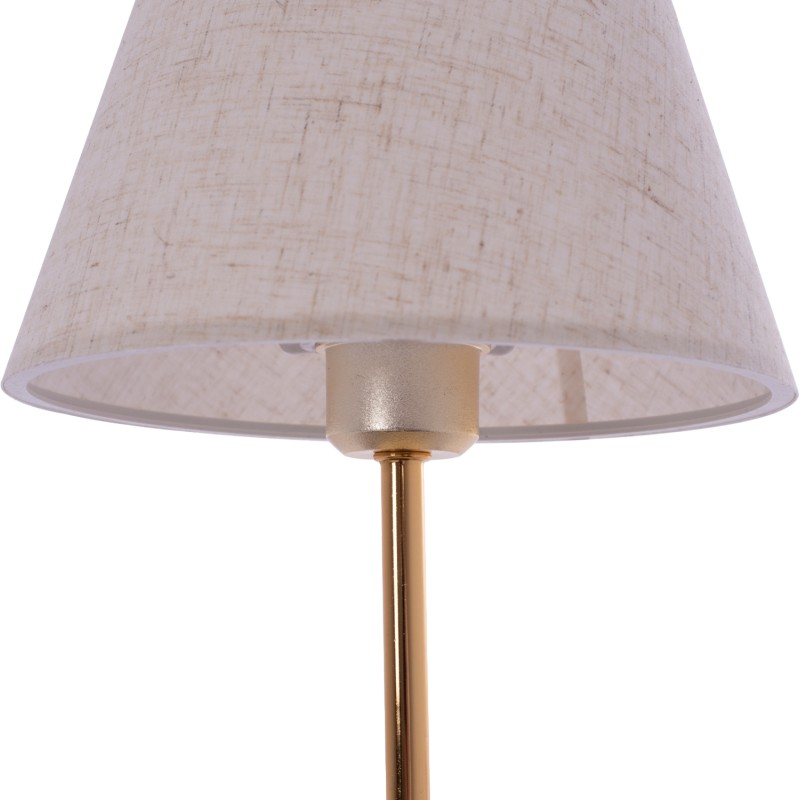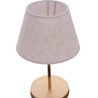 Φωτιστικό επιτραπέζιο μονοφωτο κλασικού τύπου με ξύλινη βάση σε καφέ καρύδι χρώμα και υφασμάτινο καπέλο λευκού χρώματος με ροζ λεπτομέρειες σχ.λουλουδιών με ντουι Ε27 διασ.Φ 30εκ*44εκ.