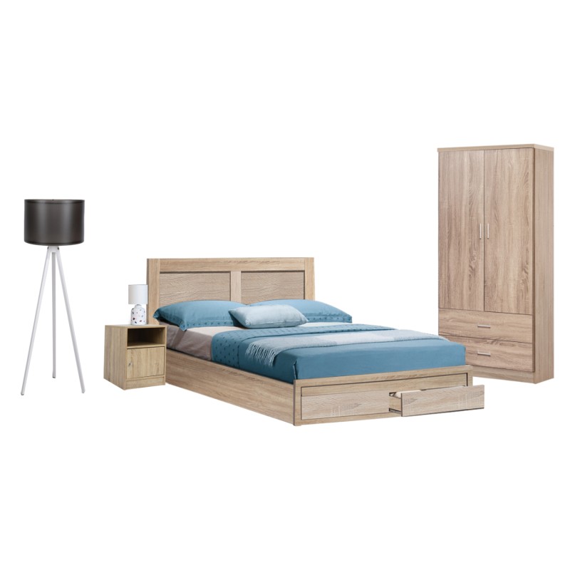 Hm312.02- Κρεβάτι ημίδιπλο, με κεφαλάρι, για στρώμα 150x200εκ, με 2 συρτάρια κάτω από το ποδαρικό. Το κρεβάτι είναι σε χρώμα Sonoma και είναι κατασκευασμένο από άριστης ποιότητας μελαμίνη. Η συσκευασία περιλαμβάνει και τις τάβλες του στρώματος και η συναρμολόγηση του κρεβατιού είναι εύκολη.