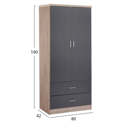 HM338.04--Ντουλάπα 2φυλλη με 2 συρτάρια, μελαμίνης σε sonama και γκρι χρώμα.