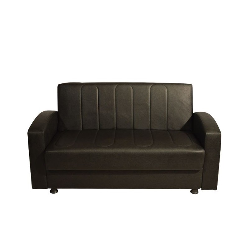 Καναπές διθέσιος επενδεδυμένος με τεχνόδερμα υψηλής ποιότητας, σε μαύρη απόχρωση 155x85x95 εκ
