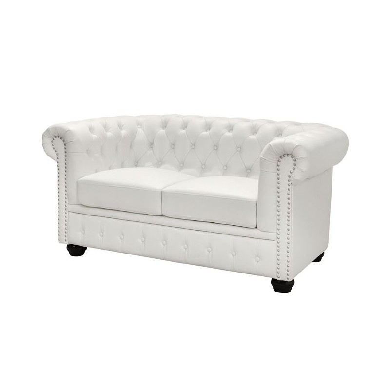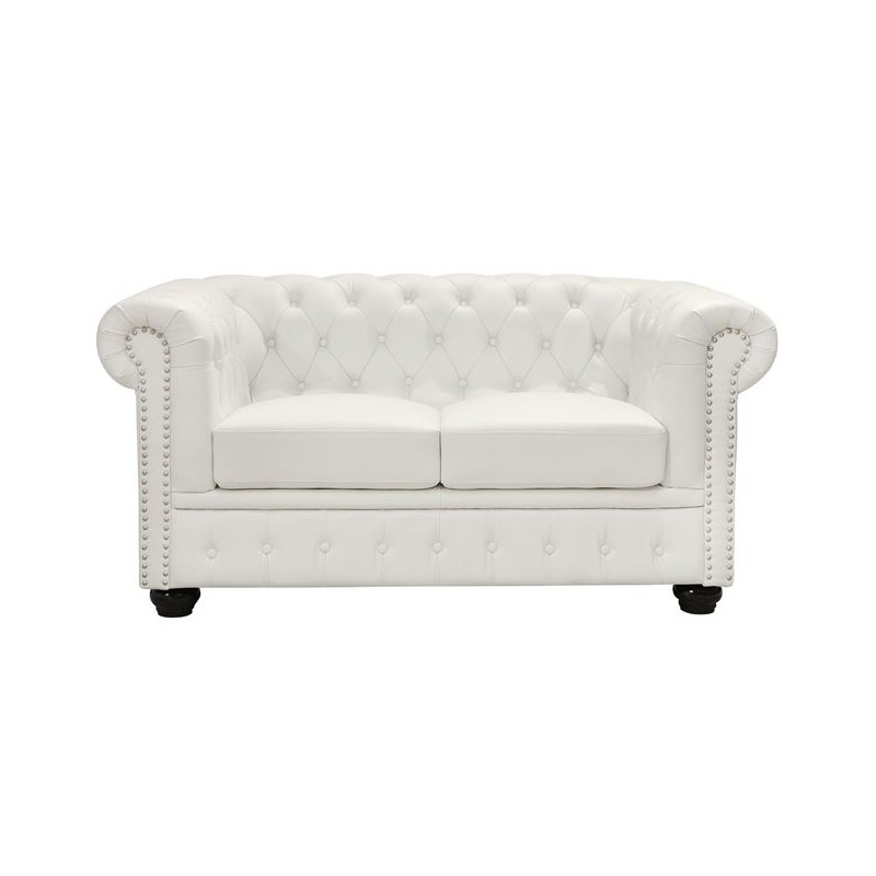 Καναπές διθέσιος τύπου Chesterfield, με τεχνόδερμα σε λευκό ματ 155x90x73 εκ.
