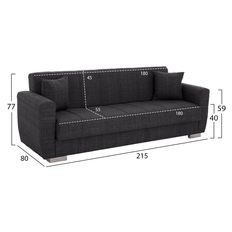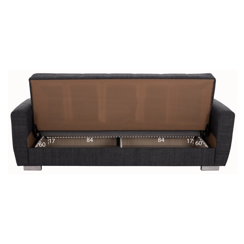 Το κύριο χαρακτηριστικό τους, όμως, είναι ότι πέφτει η πλάτη και μετατρέπονται σε ένα άνετο κρεβάτι για έκτακτες περιπτώσεις, μέσω ενός εύχρηστου μηχανισμού «κλικ-κλακ». Συνέπεια αυτού, βέβαια, είναι και η ύπαρξη αποθηκευτικού χώρου κάτω από το κάθισμα των καναπέδων, ο οποίος πάντα είναι χρήσιμος, ειδικά σε φοιτητικά σπίτια. Τέλος, τα πόδια τους είναι φαρδιά και χαμηλά δίνοντας στιβαρότητα σε όλη την κατασκευή.