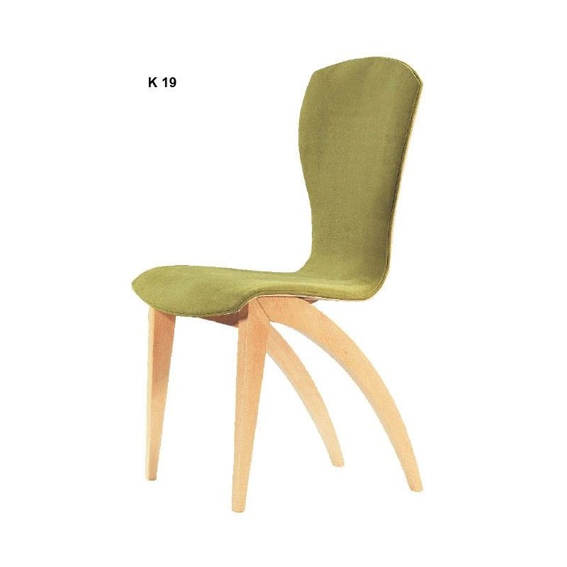 Καρέκλα τραπεζαριας μοντέρνας γραμμής και ιδιαίτερης τεχνοτροπίας της οποίας ο σκελετός ειναι από μασίφ ξύλο οξιάς πολύ σταθερός και στιβαρός με μονοκόμματη πλάτη κουρμπαριστης γραμμής .Αποπνέει μια εξαιρετική αρμονία μεταξύ ξύλου και υφασμάτινης επένδυσης π.χ.το ξύλο φαίνεται στο πίσω μέρος της πλάτης του καθίσματος.Η επιλογή τόσο του χρώματος του ξύλου όσο και της υφασμάτινης επένδυσης του καθίσματος και της πλάτης γίνεται κατόπιν συνεννοήσεως με το ηλεκτρονικό μας κατάστημα καθώς και τα δυο ειναι στη δίκη σας ευχέρεια ανάλογα με τον περιβάλλοντα χώρο του οικιακού η του επαγγελματικού σας χώρου.Υπάρχει ευρεία γκάμα δειγμάτων τόσο για την επιλογή του χρώματος του ξύλου όσο και του υφάσματος η της δερματινης του καθίσματος και της πλάτης.