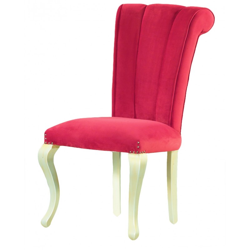 καρέκλα τραπεζαρίας κλασικής γραμμής από μασίφ ξύλο οξιάς με ιδιαίτερα σκαλίσματα και υφασμάτινη επένδυση στο κάθισμα.