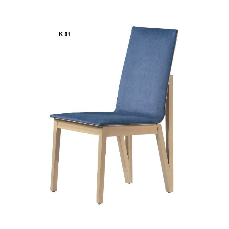 Καρέκλα τραπεζαρίας μοντέρνας γραμμής και ιδιαίτερης τεχνοτροπίας της οποίας ο σκελετός ειναι από μασίφ ξύλο πολύ σταθερός και στιβαροςEχει ιδιόμορφη κατασκευή όπως η προέκταση του ξύλου στο πίσω μέρος της πλάτης της καρέκλαςσε σχήμα π και το ελαφρώς λοξό πίσω πόδι .Αποπνέει μια εξαιρετική αρμονία μεταξύ ξύλου και υφασμάτινης επένδυσης π.χ.το ξύλο φαίνεται στο πίσω μέρος της πλάτης του καθίσματος και επιπλέον ολη η πλατη ειναι επενδυμένη με ξύλο.Η επιλογή τόσο του χρώματος του ξύλου όσο και της υφασμάτινης επένδυσης του καθίσματος και της πλάτης γίνεται κατόπιν συνεννοήσεως με το ηλεκτρονικό μας κατάστημα καθώς και τα δυο ειναι στη δίκη σας ευχέρεια ανάλογα με τον περιβάλλοντα χώρο του οικιακού η του επαγγελματικού σας χώρου.Υπάρχει ευρεία γκάμα δειγμάτων τόσο για την επιλογή του χρώματος του ξύλου όσο και του υφάσματος η της δερματινης του καθίσματος και της πλάτης.
