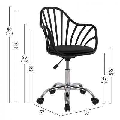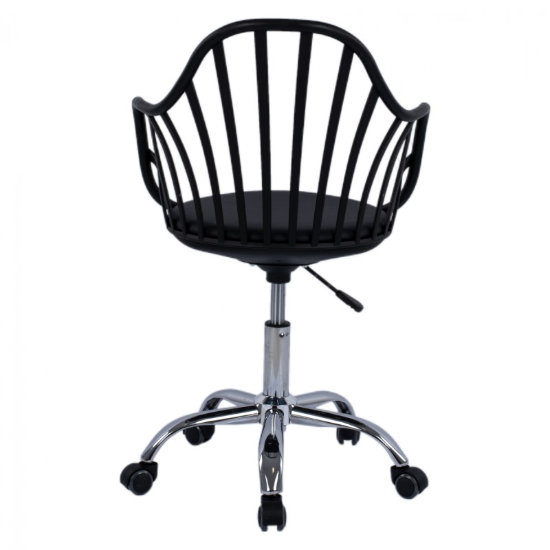 Σας παρουσιάζουμε την “BECKY”. Μια καρέκλα γραφείου σε μαύρο χρώμα, λιτή και ταυτόχρονα λειτουργική που θα ικανοποιήσει τόσο τον μαθητή στο σπίτι, όσο και πολλούς επαγγελματίες. Το design της είναι απλό, με το κάθισμα να είναι στρογγυλό χωρίς βαθύ «μαξιλάρι» και η μεσαίου ύψους πλάτη με τα μπράτσα να αποτελούν μια ενιαία κατασκευή με κάθετες ακτίνες αγκαλιάζοντας το σώμα. Η ανάρτηση προσφέρει ρύθμιση ύψους μέσω ενός μεταλλικού μοχλού, ενώ η χρωμιωμένη αστεροειδής βάση με τους μαύρους τροχίσκους ολοκληρώνει την πανέμορφη αυτή υλοποίηση.