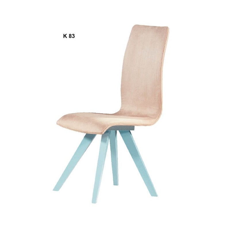Καρέκλα τραπεζαρίας μοντέρνας γραμμής ιδιαίτερης τεχνοτροπίας στα πόδια, της οποίας ο σκελετός ειναι από μασίφ ξύλο οξιάς πολύ σταθερός και στιβαρός και μονοκόμματη πλάτη ίσιας γραμμής όλη επενδυμένη με ξύλο .Αποπνέει μια εξαιρετική αρμονία μεταξύ ξύλου και υφασμάτινης επένδυσης π.χ.το ξύλο φαίνεται στο πίσω μέρος της πλάτης του καθίσματος.Η επιλογή τόσο του χρώματος του ξύλου όσο και της υφασμάτινης επένδυσης του καθίσματος και της πλάτης γίνεται κατόπιν συνεννοήσεως με το ηλεκτρονικό μας κατάστημα καθώς και τα δυο ειναι στη δίκη σας ευχέρεια ανάλογα με τον περιβάλλοντα χώρο του οικιακού η του επαγγελματικού σας χώρου.Υπάρχει ευρεία γκάμα δειγμάτων τόσο για την επιλογή του χρώματος του ξύλου όσο και του υφάσματος η της δερματινης του καθίσματος και της πλάτης.