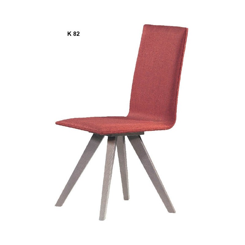 Καρέκλα τραπεζαρίας μοντέρνας γραμμής ιδιαίτερης τεχνοτροπίας στα ποδια, της οποίας ο σκελετός ειναι από μασίφ ξύλο οξιάς πολύ σταθερός και στιβαρός και μονοκόμματη πλάτη ίσιας γραμμής .Αποπνέει μια εξαιρετική αρμονία μεταξύ ξύλου και υφασμάτινης επένδυσης π.χ.το ξύλο φαίνεται στο πίσω μέρος της πλάτης του καθίσματος.Η επιλογή τόσο του χρώματος του ξύλου όσο και της υφασμάτινης επένδυσης του καθίσματος και της πλάτης γίνεται κατόπιν συνεννοήσεως με το ηλεκτρονικό μας κατάστημα καθώς και τα δυο ειναι στη δίκη σας ευχέρεια ανάλογα με τον περιβάλλοντα χώρο του οικιακού η του επαγγελματικού σας χώρου.Υπάρχει ευρεία γκάμα δειγμάτων τόσο για την επιλογή του χρώματος του ξύλου όσο και του υφάσματος η της δερματινης του καθίσματος και της πλάτης.