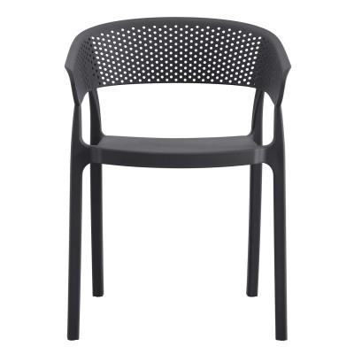 Πολυθρόνα πολυπροπυλενίου σε ΓΚΡΙ χρώμα. Ιδανική πρόταση για χρήση σε εξωτερικούς χώρους, είτε επαγγελματικούς (χώροι δεξιώσεων, εταιρείες catering, κλπ.) είτε για το σπίτι. Η πολυθρόνα αποτελείται από ένα λείο κάθισμα και μια ημικυκλική, ανεξάρτητη και «τρυπητή» πλάτη και μπράτσα. Είναι πανέμορφη και θα αναβαθμίσει αισθητικά κάθε εξωτερικό χώρο.