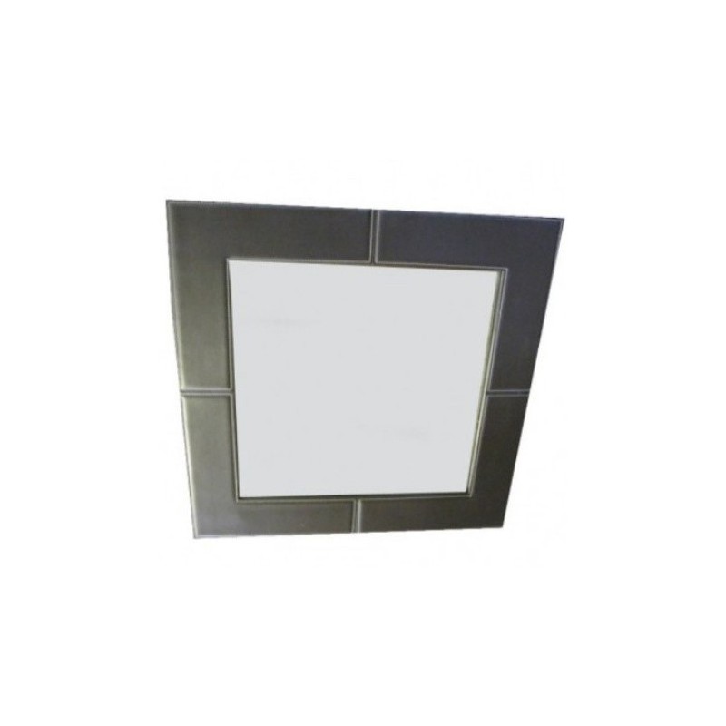 Καθρέπτης τοίχου τετράγωνος από καφέ τεχνόδερμα διαστάσεων 68*68εκ.