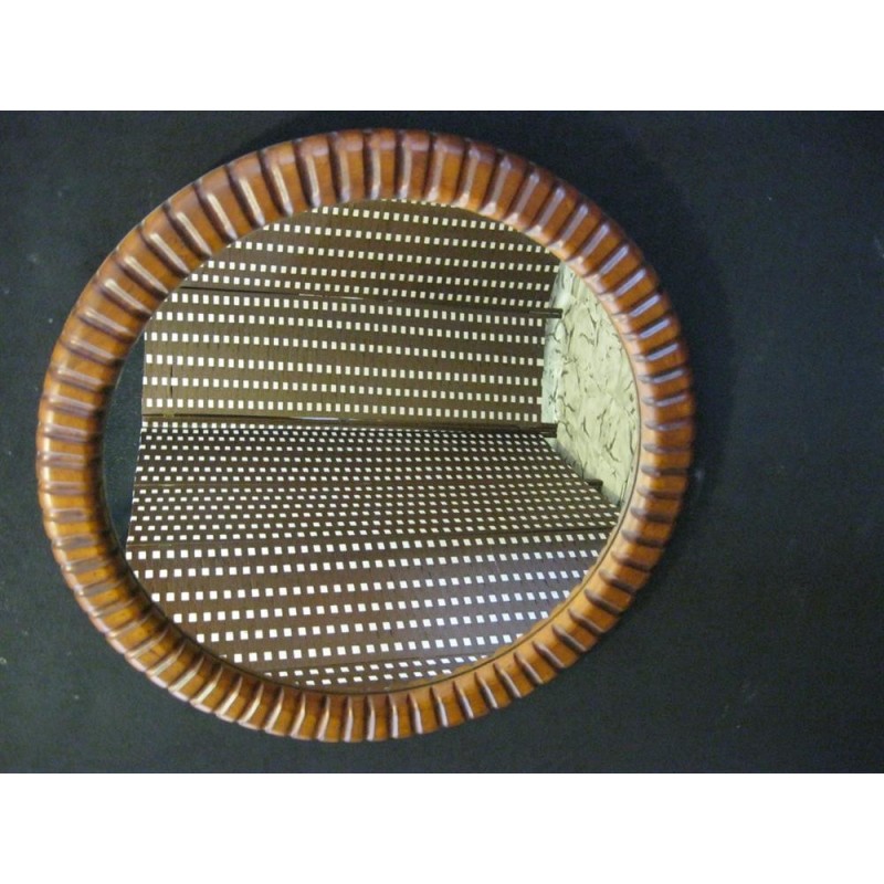Καθρέπτης τοίχου με ξύλινη κορνίζα ανάγλυφη σε καφέ χρώμα διαμέτρου 65εκ.