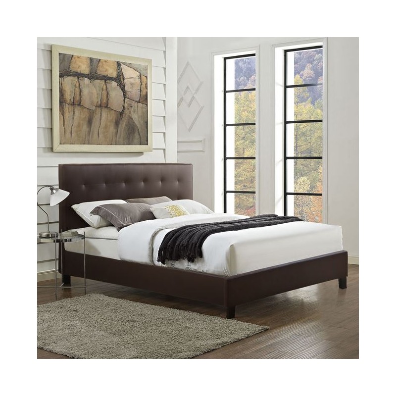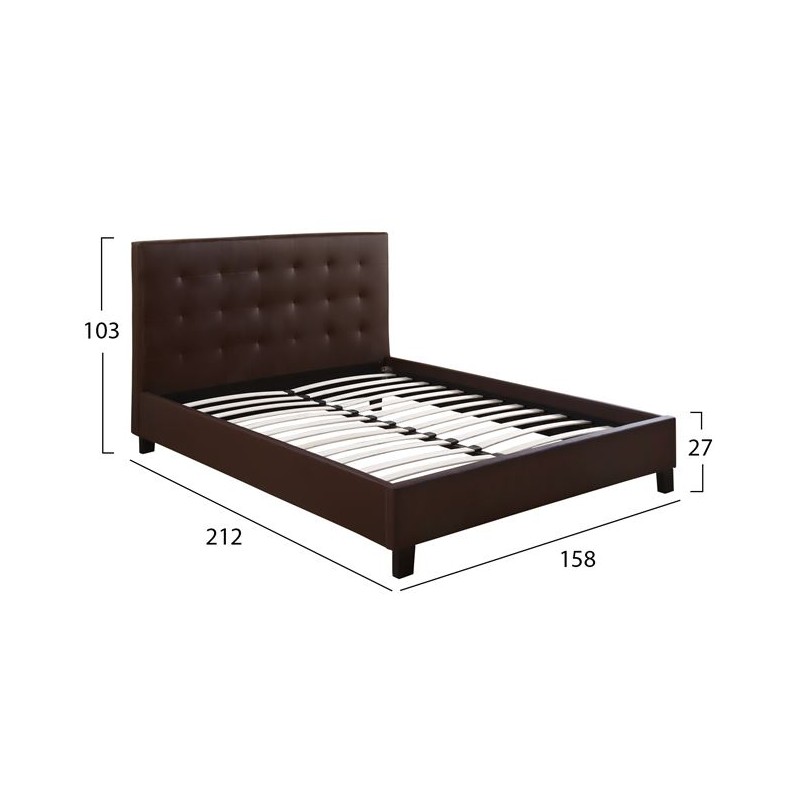 •Αισθητική υπεροχή με το καφέ PU leather με καπιτονέ τεχνοτροπία στο κεφαλάρι