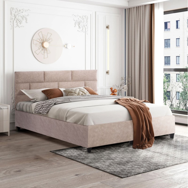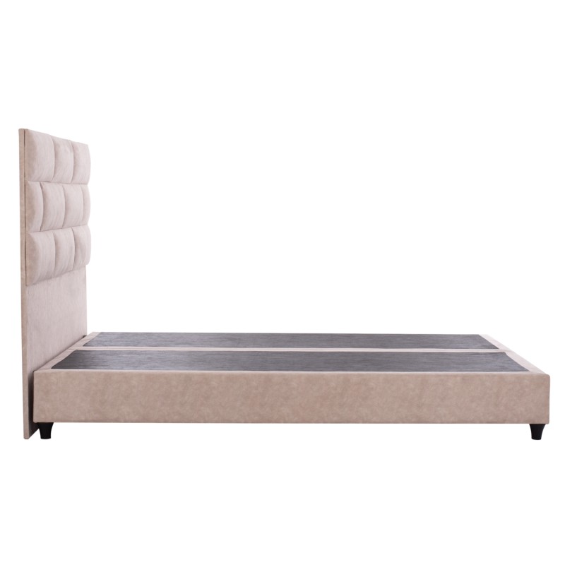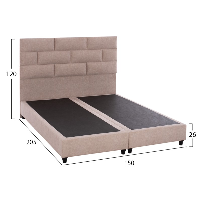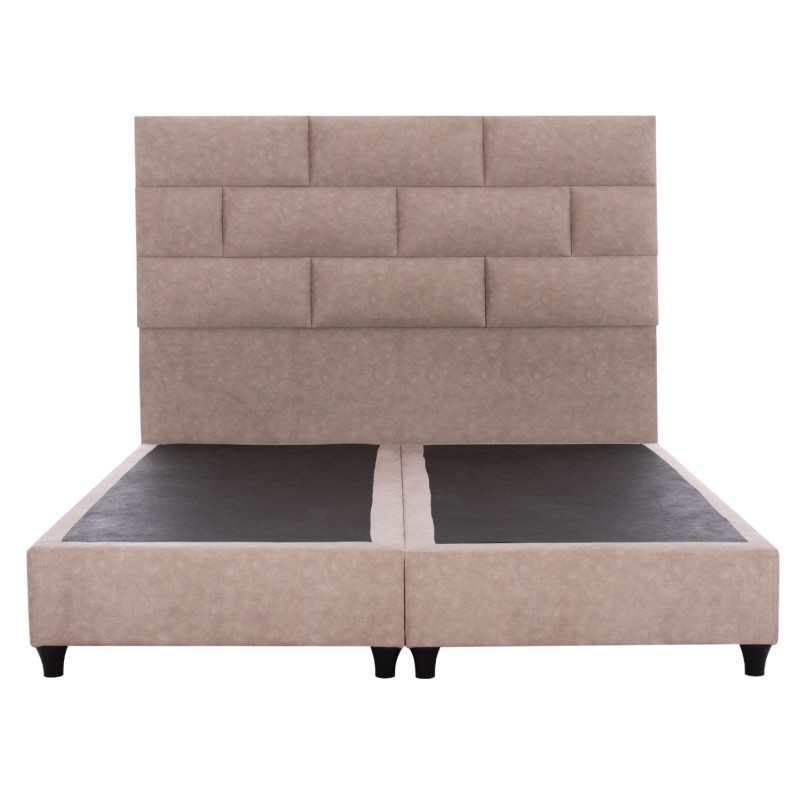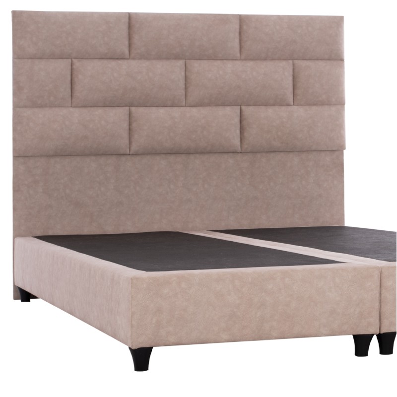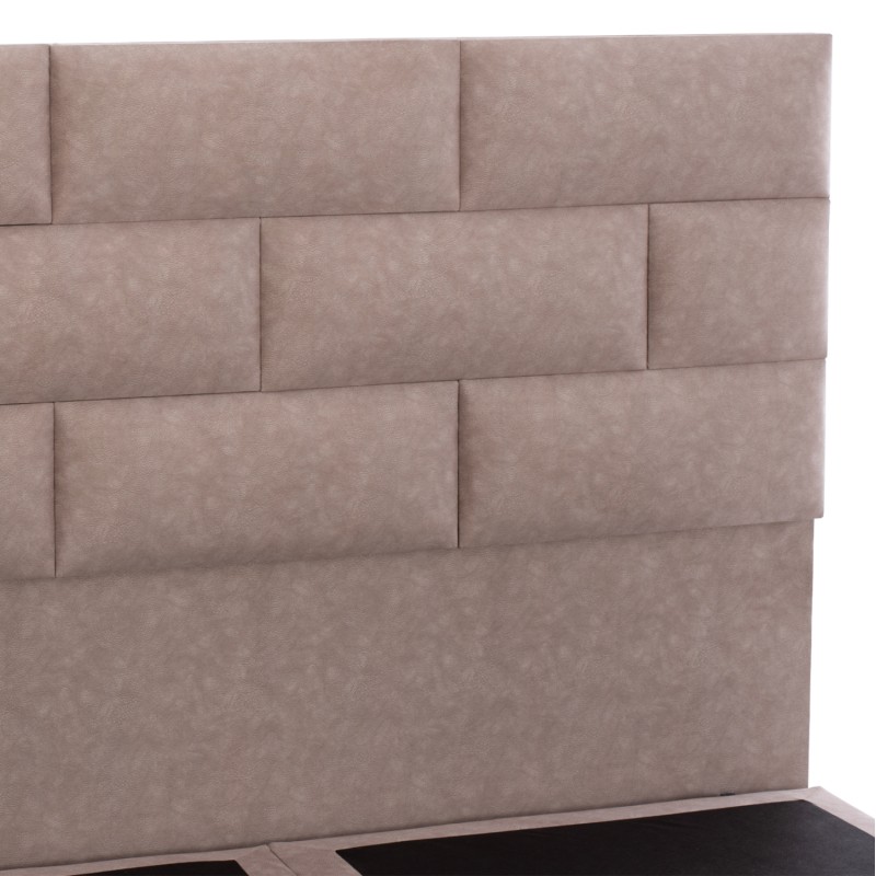 Η επένδυση έχει γίνει εξολοκλήρου από ανάγλυφο ύφασμα τύπου NUBUCK εξαιρετικής ποιότητας, χαρίζοντας ελκυστική όψη και μια εκλεπτυσμένη γοητεία στην διακόσμηση του υπνοδωματίου.