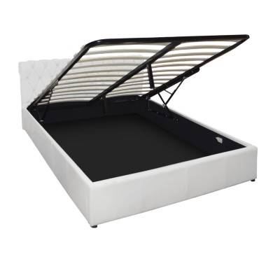 Το στρώμα στηρίζεται σε παραδοσιακές αλλά εργονομικές τάβλες στήριξης, οι οποίες τοποθετούνται σε ένα μεταλλικό πλαίσιο που ανασηκώνεται με μηχανισμό ασφαλείας, προσφέροντας έναν μεγάλο ΑΠΟΘΗΚΕΥΤΙΚΟ χώρο. Τα πόδια είναι εξαιρετικά χαμηλά και χρησιμεύουν για να προσδώσουν στιβαρότητα σε όλη την κατασκευή.