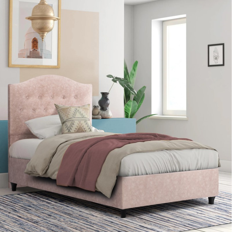 Η επένδυση έχει γίνει εξολοκλήρου από βελούδινο ύφασμα, χαρίζοντας ελκυστική όψη και μια εκλεπτυσμένη γοητεία στην διακόσμηση του υπνοδωματίου. Το βελούδο είναι το ύφασμα που δεν μπορεί να αφήσει κανέναν ασυγκίνητο! Είτε καλύπτει μικρές είτε μεγάλες επιφάνειες, δεν μπορεί παρά να κάνει την παρουσία του αισθητή στο χώρο και να μαγνητίσει τα βλέμματα. Το βελούδο είναι ένα ύφασμα που αγαπήθηκε ιδιαιτέρως από τους βασιλείς και τους αυτοκράτορες των περασμένων αιώνων, με αποτέλεσμα να γίνει συνώνυμο της πολυτέλειας και της αίγλης. Έχει κατακλύσει τις βιτρίνες των μεγαλύτερων καταστημάτων και αποτελεί μία από τις πιο αγαπημένες επιλογές των πιο επώνυμων διακοσμητών παγκοσμίως. Πρόκειται για ένα ύφασμα απαλό, χαλαρό, απολαυστικό και φινετσάτο που είναι αδύνατον να του αντισταθεί κάποιος. Το θετικό είναι ότι μπορεί να εναρμονιστεί εύκολα με κάθε είδος διακόσμησης, προσδίδοντας στο χώρο φινέτσα και καλαισθησία.