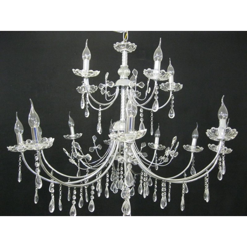 πολυέλεος με δεκαπέντε φωτα Ε14 σε inox γυαλιστερό χρωμα με κρυστάλλινα διακοσμητικά επιβλητικός και πλούσιος κατάλληλος για σπίτια και επαγγελματικούς χώρους
