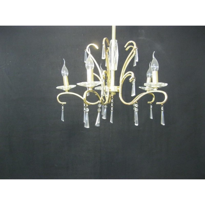 πολυέλεος με πεντε φωτα Ε14 σε χρυσο γυαλιστερό χρωμα με κρυστάλλινα διακοσμητικά επιβλητικός και πλούσιος κατάλληλος για σπίτια και επαγγελματικούς χώρους