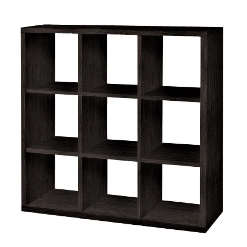 Βιβλιοθήκη με κύβους 3x3 σε καρυδί χρώμα.