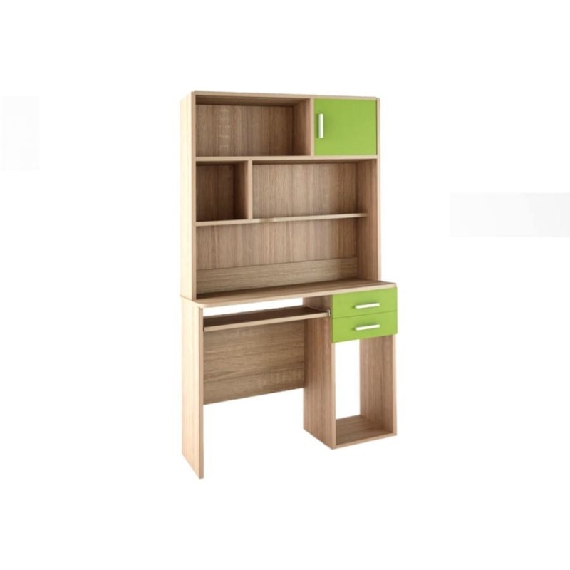 Παιδικό γραφείο 1 μέτρο με εταζέρα σε λαχανί και φυσικό δρυς χρώμα, με 2 συρτάρια και θέση για μονάδα Η/Υ.
