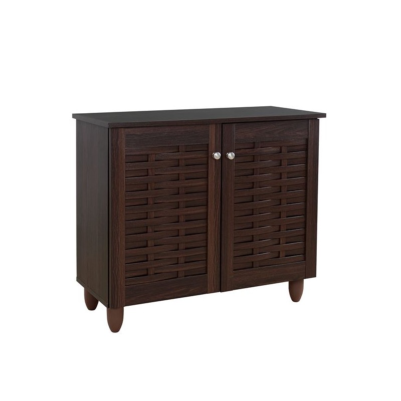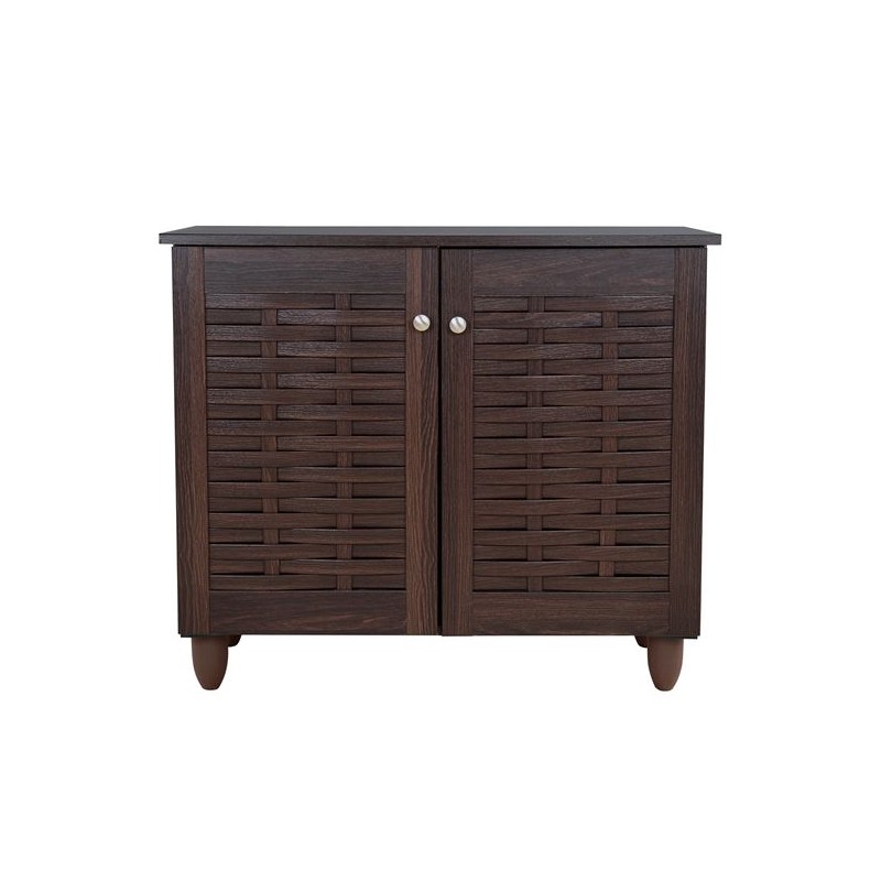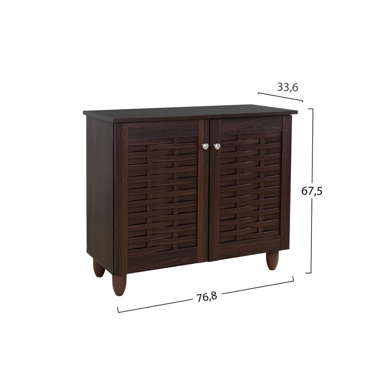 Παπουτσοθήκη σκούρο καρυδί χρώμα με σχέδιο στο νταμπλά με 2 συρτάρια περιστροφής & 1 συρτάρι από mdf διαστάσεων 80*34*93εκ.