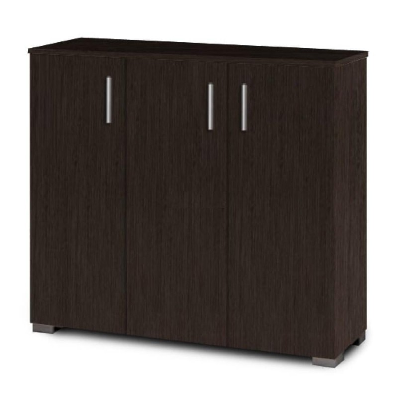 Παπουτσοθήκη σκούρο καρυδί χρώμα με σχέδιο στο νταμπλά με 2 συρτάρια περιστροφής & 1 συρτάρι από mdf διαστάσεων 80*34*93εκ.