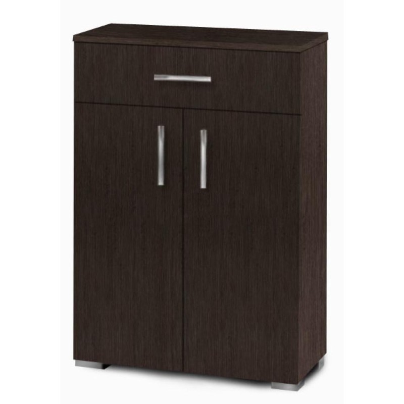 Παπουτσοθήκη σκούρο καρυδί χρώμα με σχέδιο στο νταμπλά με 2 συρτάρια περιστροφής & 1 συρτάρι από mdf διαστάσεων 80*34*93εκ.