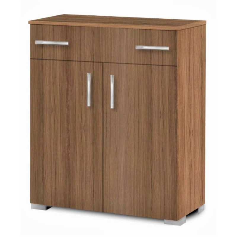 παπουτσοθηκη με ανοιγωμονες πόρτες και διακοσμητικό τζάμι.