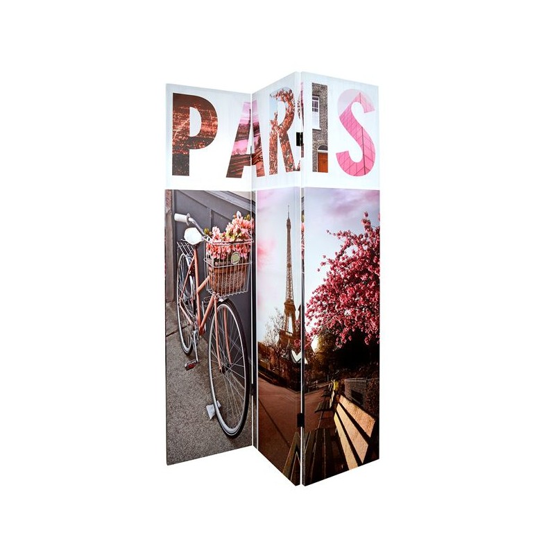 Διακοσμητικό παραβάν διπλής όψης από τυπωμένο καμβά, με τρία φύλλα σε σχέδιο Paris. Χρησιμοποιήστε το στο χώρο σας και στολίστε ή κρύψτε κάτι στο σπίτι σας με τον πιο όμορφο τρόπο.