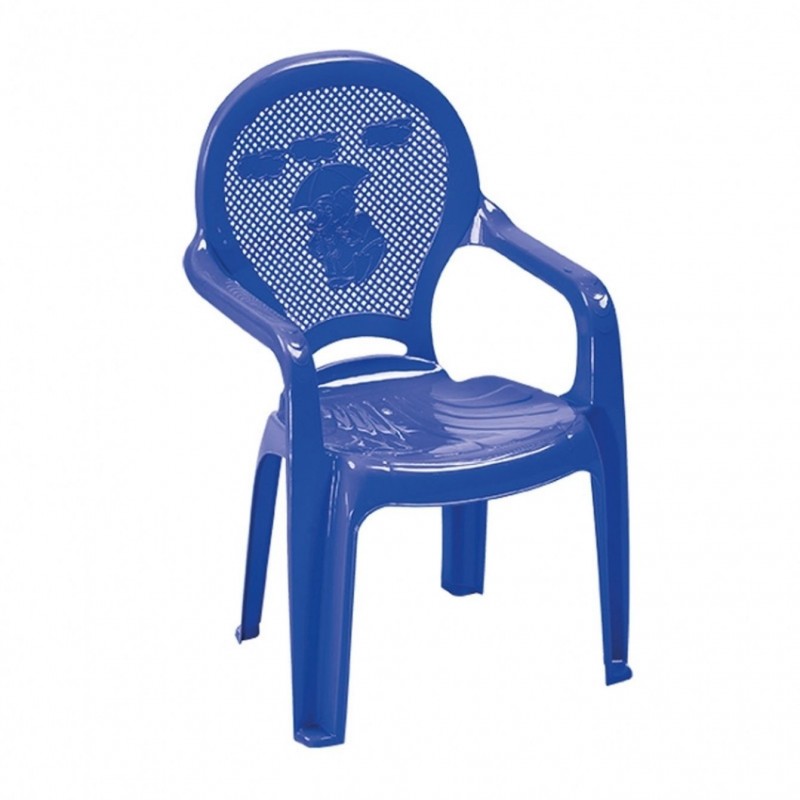 Πλαστική παιδική πολυθρόνα με σχέδιο στην πλάτη χρώματος μπλε.