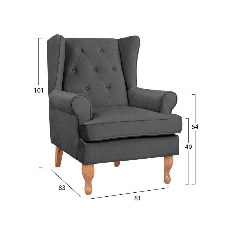 Σας παρουσιάζουμε την μπερζέρα BRANDON, σε ουδέτερο ΓΚΡΙ χρώμα με ξύλινα πόδια. Τα πόδια είναι σε φυσικό χρώμα ξύλου, και ιδιαίτερα τα εμπρός πόδια έχουν όμορφο σκαλιστό φινίρισμα. Η επένδυση της πλάτης έχει γίνει με τεχνοτροπία καπιτονέ που προσδίδει ιδιαίτερη ομορφιά στην μπερζέρα σε συνδυασμό, φυσικά, με το υψηλής ποιότητας βελούδινο ύφασμα. Τα μπράτσα και το κάθισμα είναι ιδιαιτέρως αναπαυτικά ανταποκρινόμενα στον χαρακτήρα της πολυθρόνας.