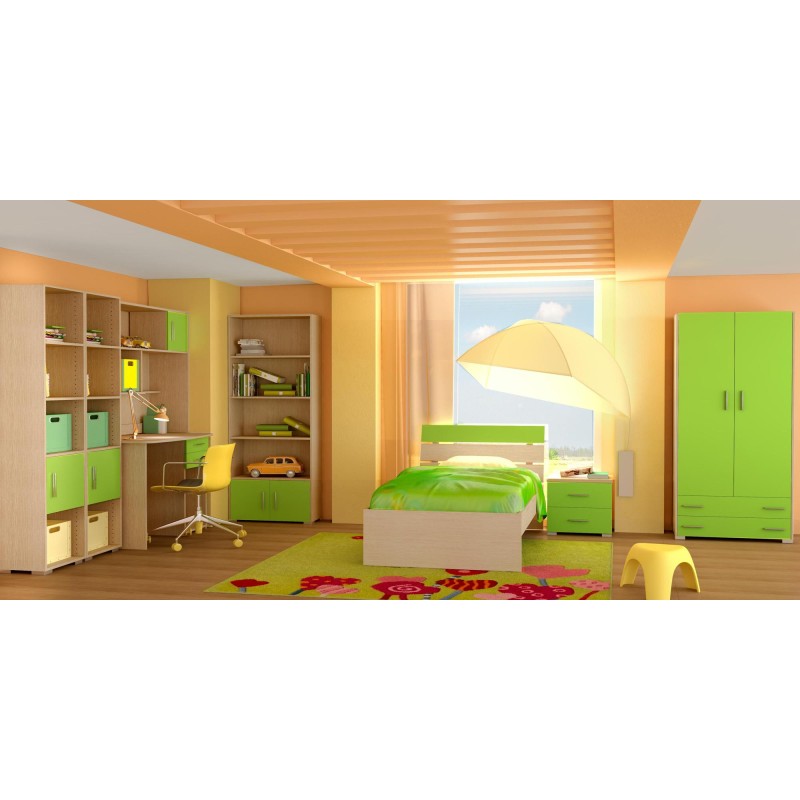 Σετ παιδικό δωμάτιο "Νότα" δρυς-λαχανί 90x200