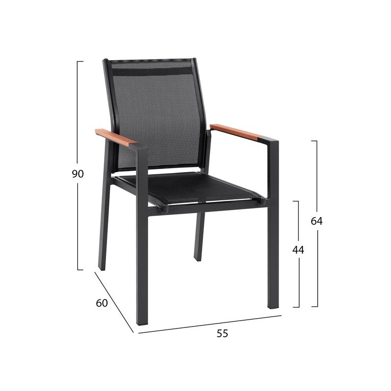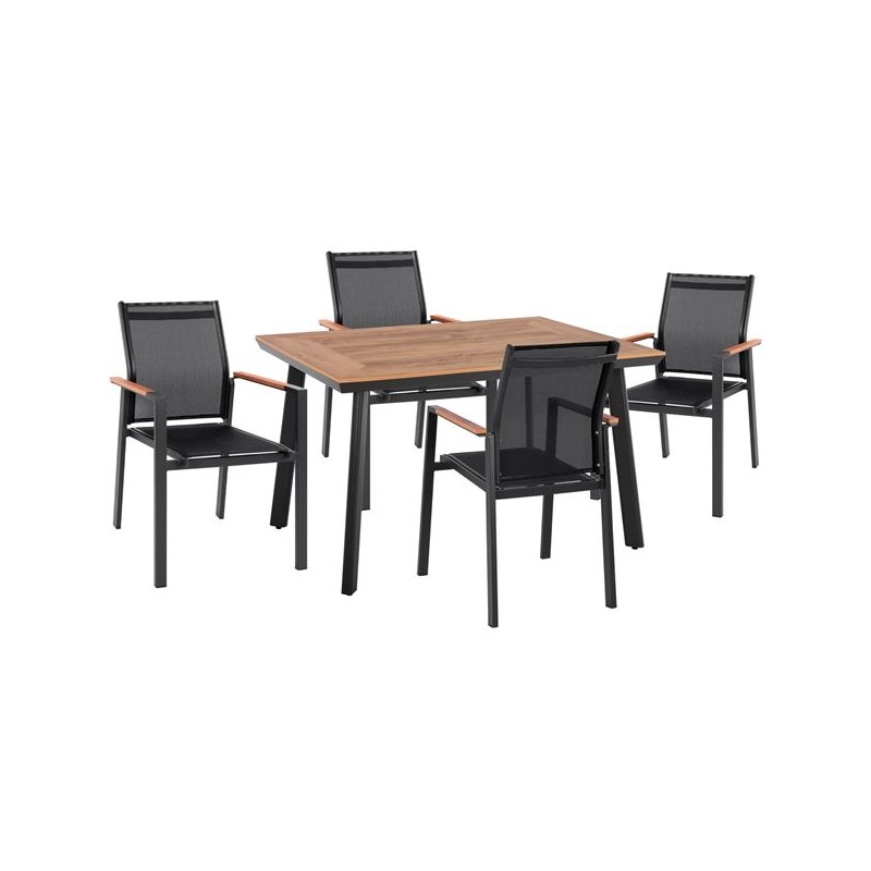 Σετ κήπου 5τμχ αλουμινίου πολυθρόνες στοιβαζομενες με διπλό διάτρητο ανθρακί HYT-0148 150x90x72εκ